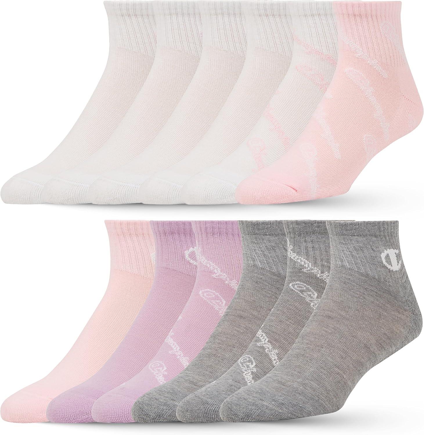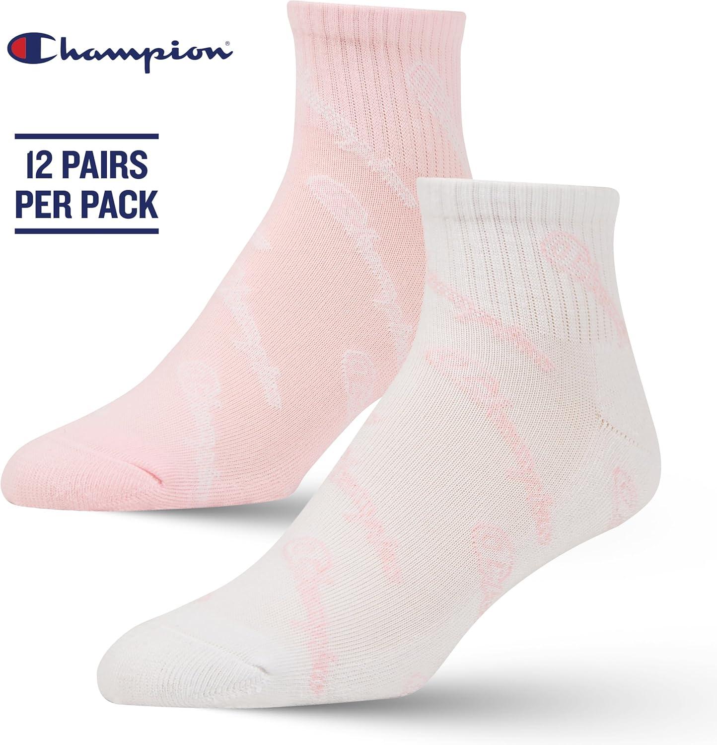 Champion Boys and Girls Socks 8 Pair Crew Low Cut No Show Ankle Quarter Socks for Girls(Pink Candy)