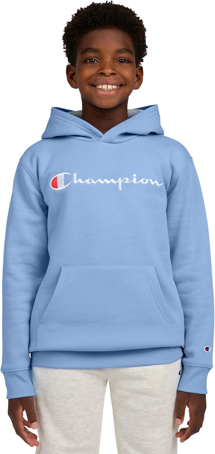 The perfect boys fleece hoodie, Our Champion Youth Heritage Powerblend Fleece Pull On Sweat Shirt with Hood. Give them the comfort they deserve in the Champion Boy’s/Girl's Script Fleece Hoodie. Featuring an embroidered Champion logo on chest and a C logo on the left sleeve. With an attached hood and kangaroo pocket for added comfort and warmth. Pullover hoodie keeps kids comfortable no matter how hard they play.