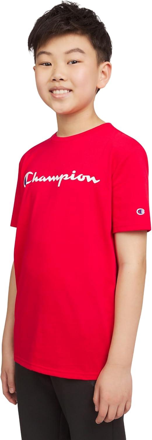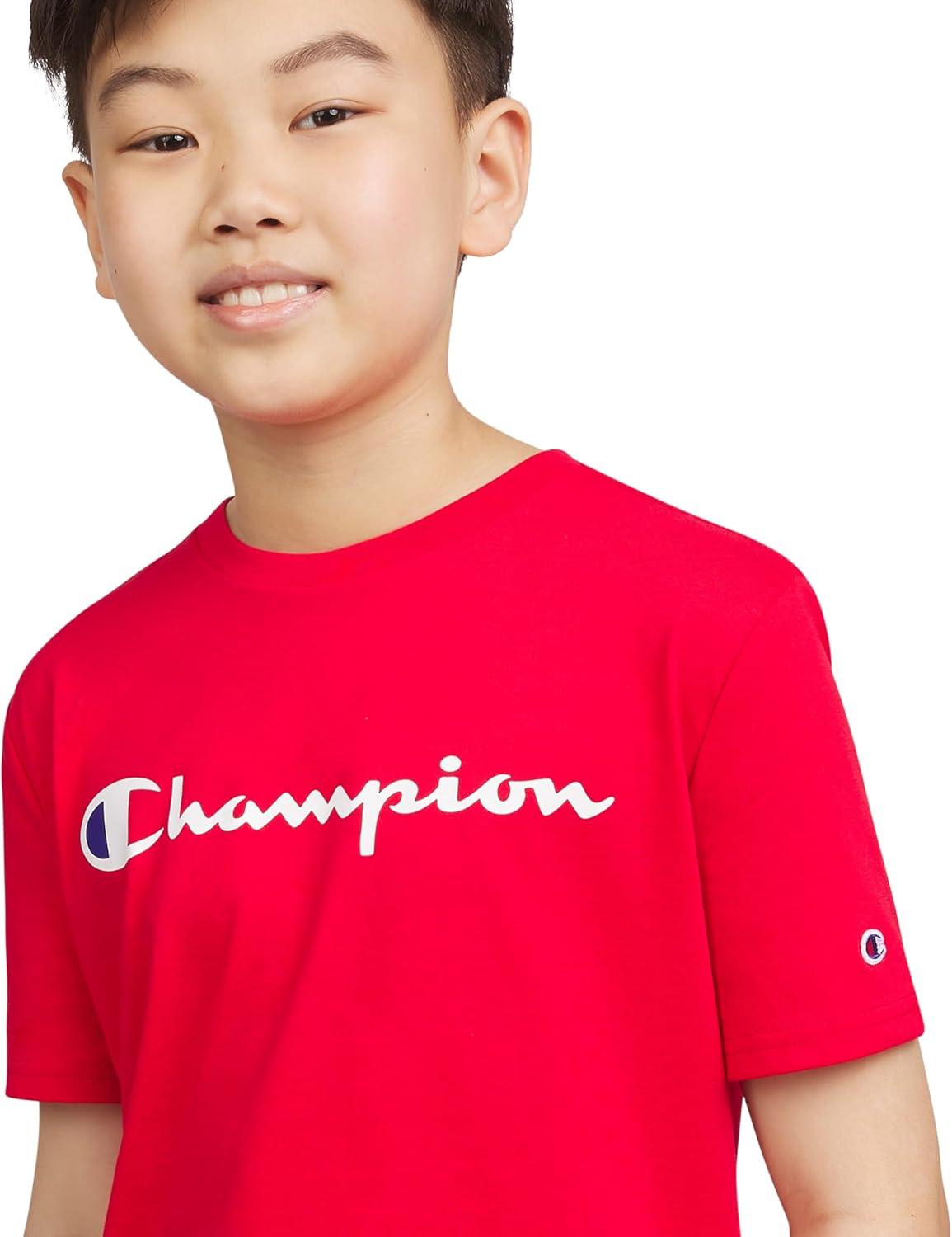 Champion Boys Boys Tee Shirt Short Sleeve Logo T-Shirt for Kids(Signature Red)