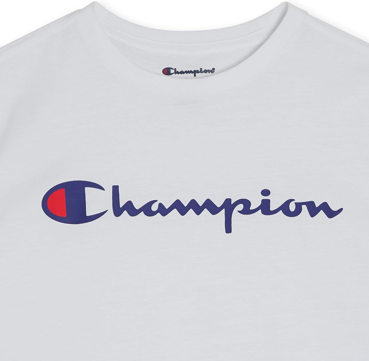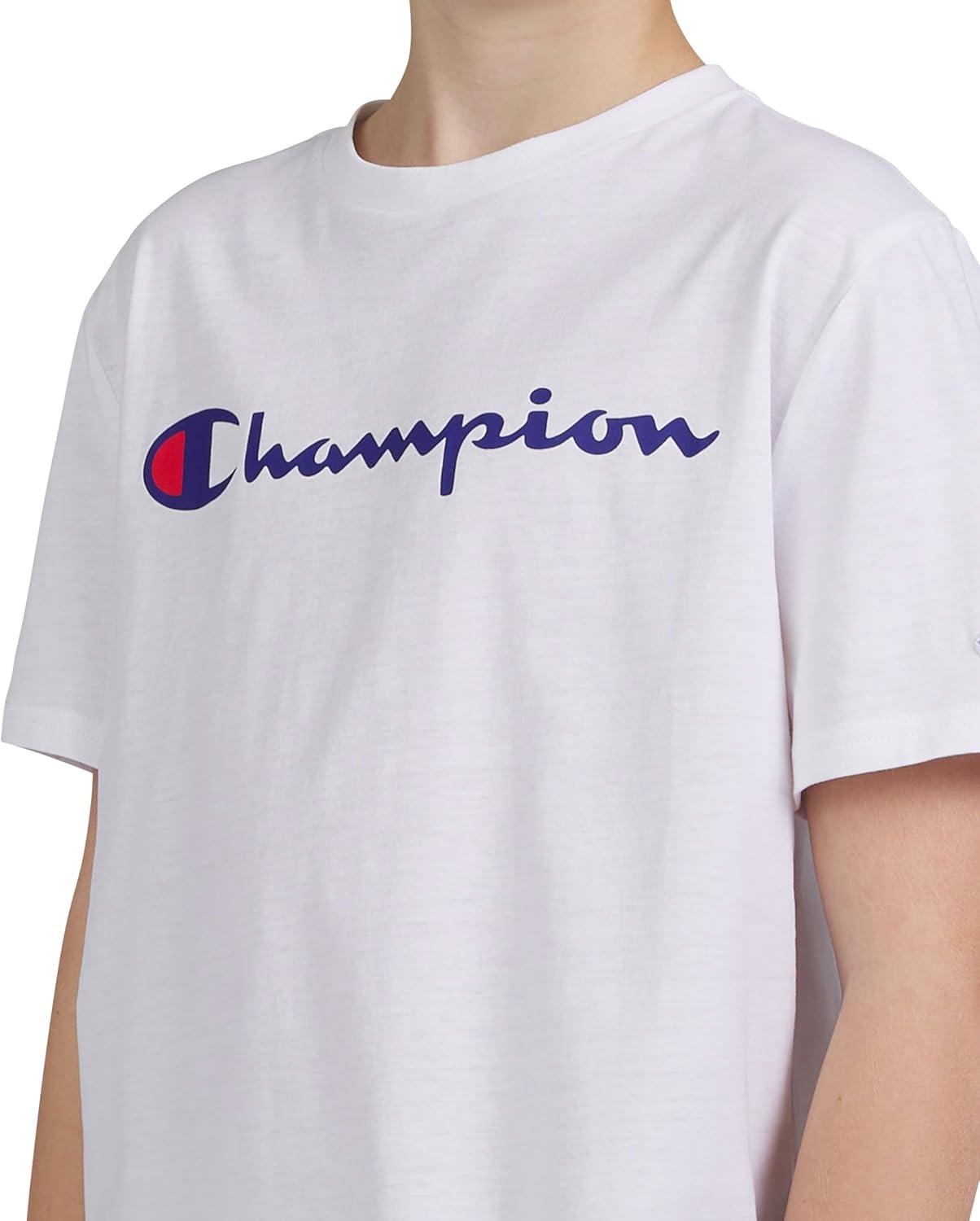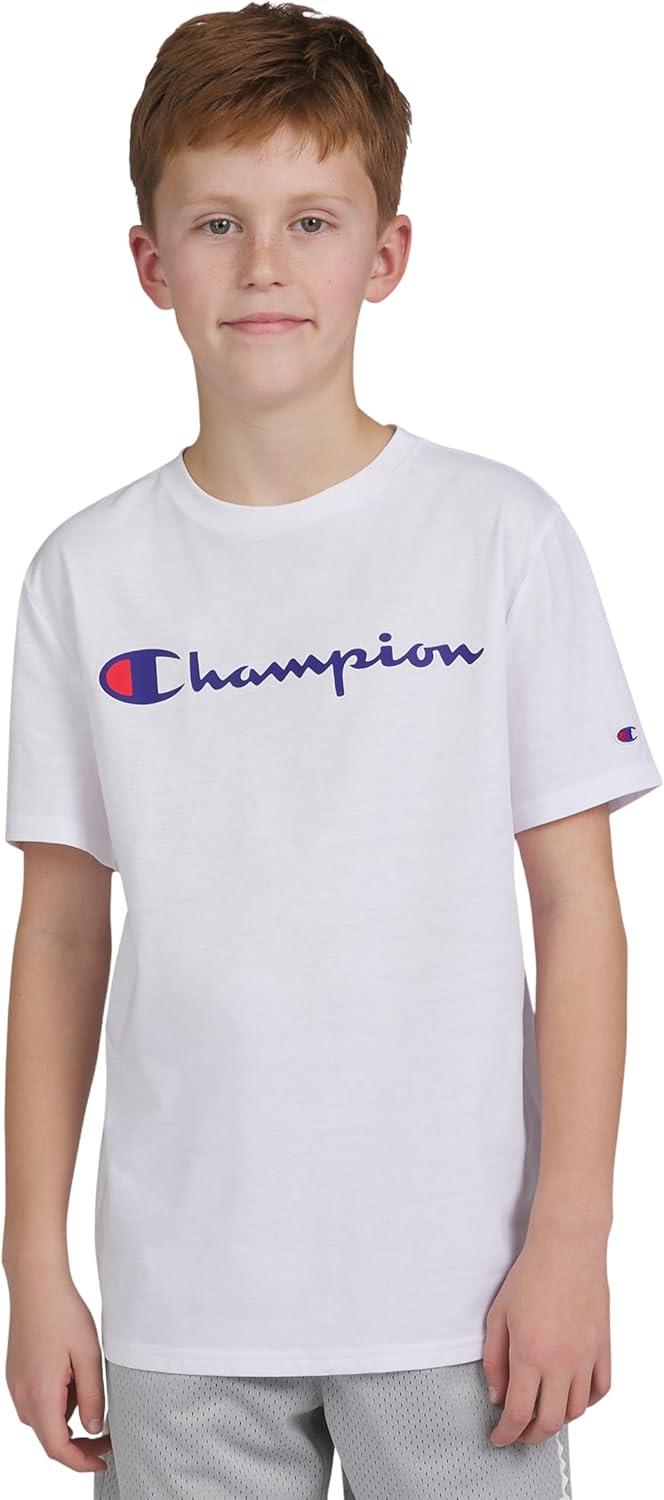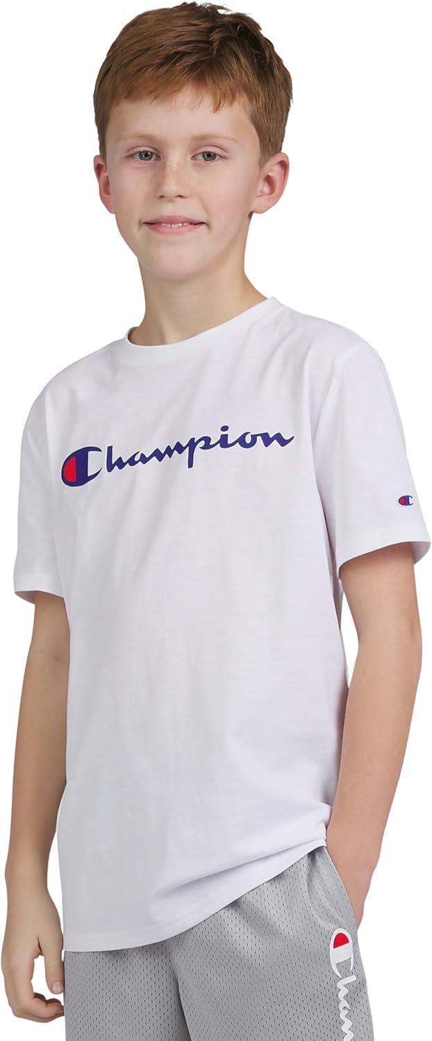 Champion Boys Boys Tee Shirt Short Sleeve Logo T-Shirt for Kids(Signature White)