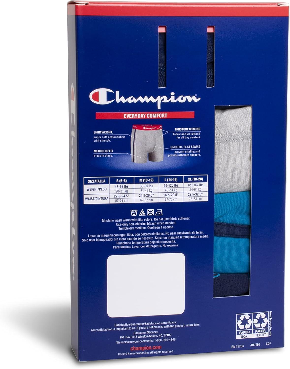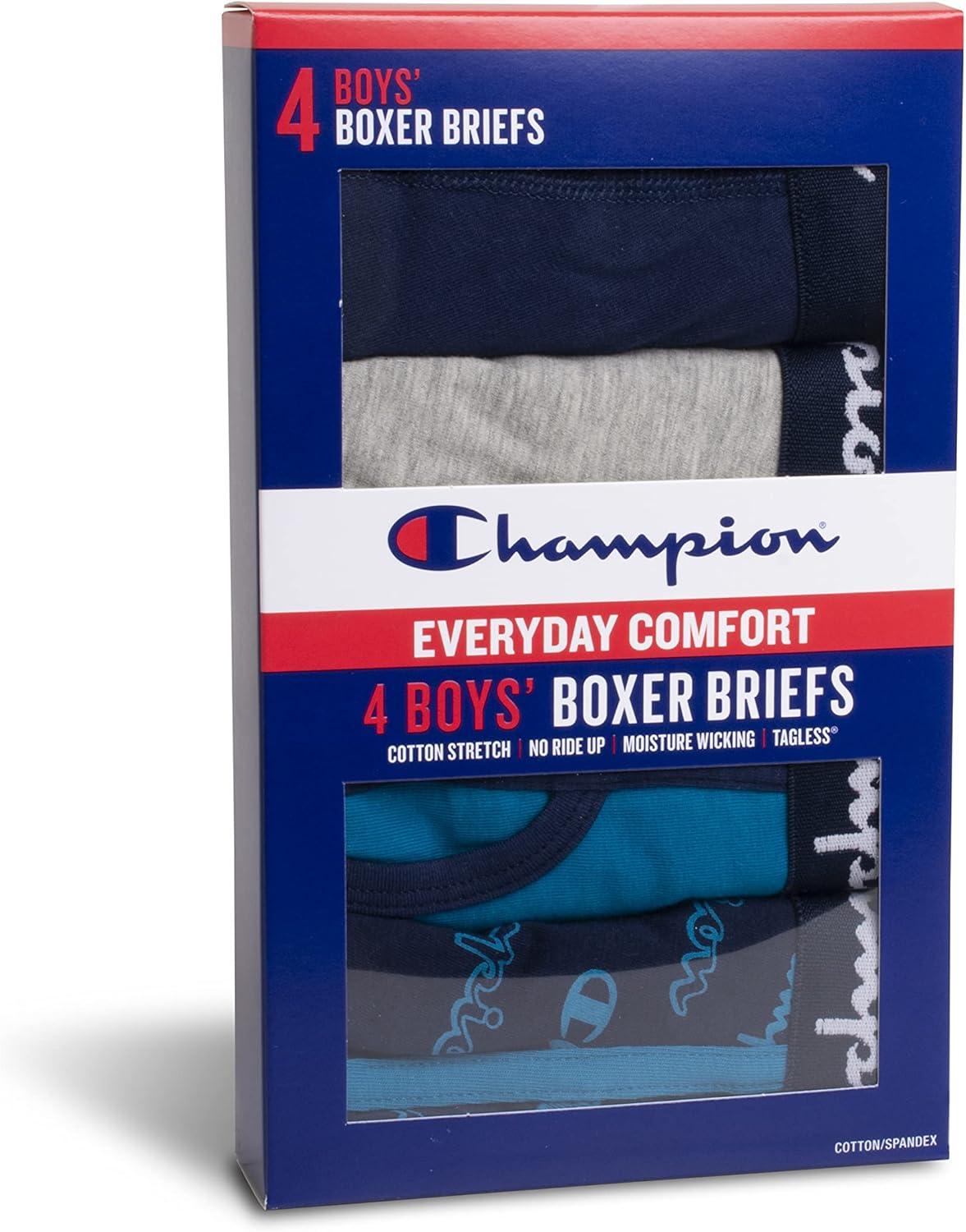 Champion Boys’ Everyday Cotton Stretch Briefs- 4 Pack(Navy/Teal/Grey)