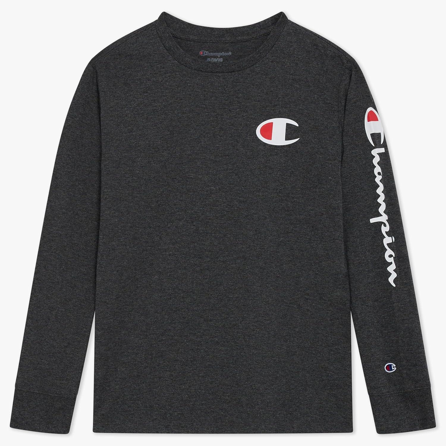 Upgrade your kid’s wardrobe with the iconic Champion Boys Long Sleeve Tee Shirts, designed for style, comfort, and durability. Available in a wide range of vibrant colors and sizes, these long sleeve tees are a must-have for any young athlete or casual wearer. Crafted from the highest quality stretch cotton blend, each t-shirt ensures long-lasting comfort and durability. The soft and breathable fabric allows for easy movement, making it ideal for active kids who love to play sports or engage in outdoor activities. Whether it’s basketball, football, baseball, gym workouts, or any other exercise, these crewneck tees provide the flexibility and comfort needed for peak performance. The durable material withstands the rigors of play, ensuring your child can enjoy their favorite activities without restriction. Mix and match these versatile long sleeve tees with any outfit for a stylish and practical addition to your child’s wardrobe. Perfect for layering or wearing on its own, these tees are great for school, casual outings, or sports practice. They pair seamlessly with Champion Shorts, Sweatpants, and Sweatshirts, making it easy to create a coordinated look. Looking for a great gift idea? These long sleeve tees are a perfect choice for birthdays, holidays, or any special occasion. Every kid will love the comfort, style, and versatility of these tees, making them a favorite in their collection.