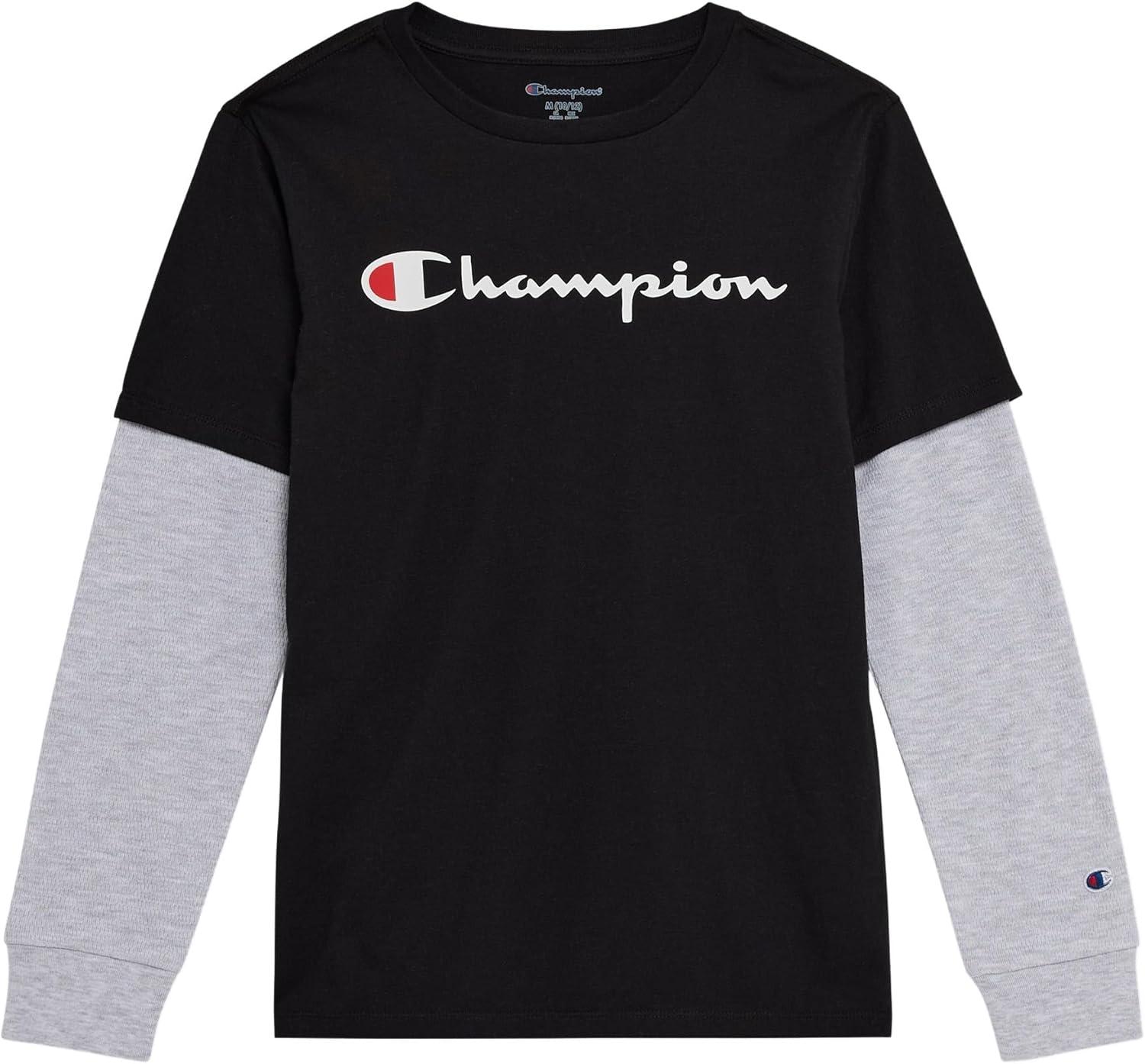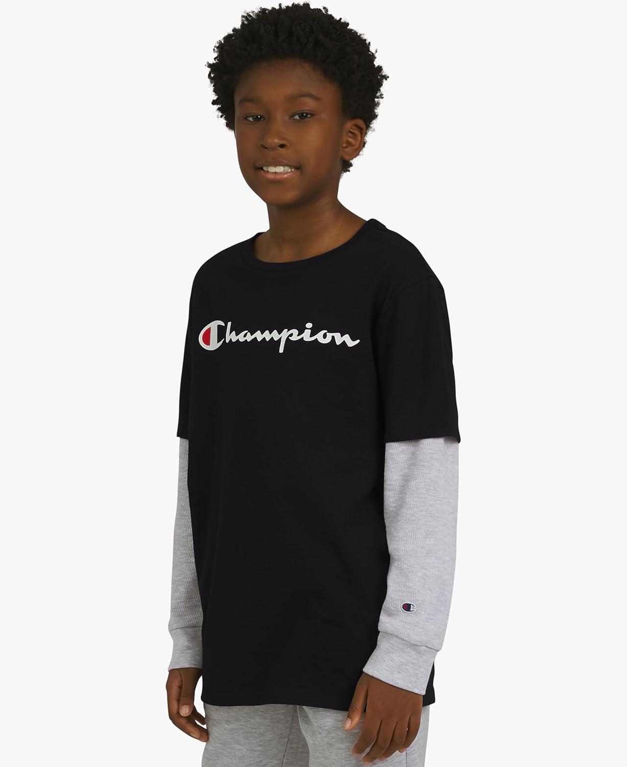 Champion Boys' Long Sleeve Tee Shirt for Kids Athletic Tops(Jet Black)