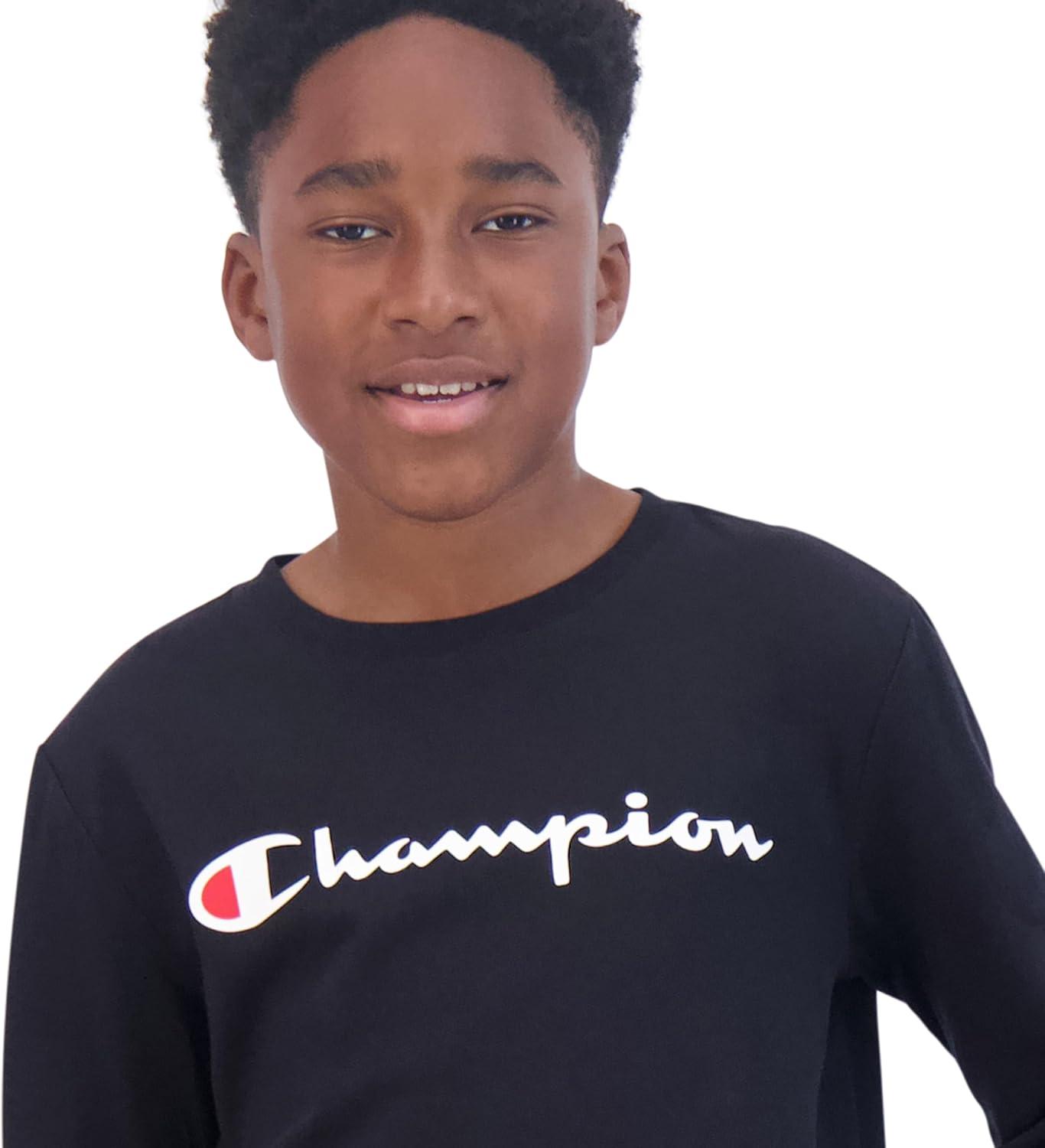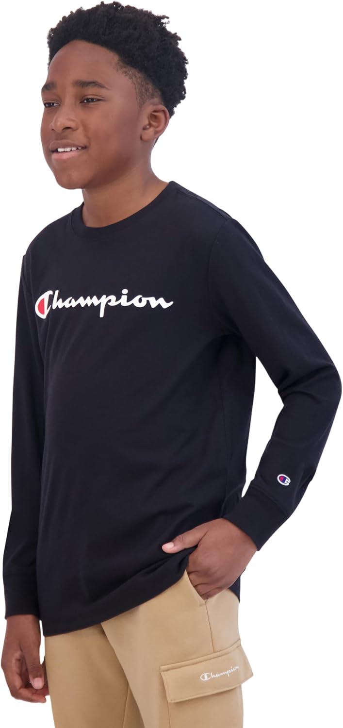Upgrade your kid’s wardrobe with the iconic Champion Boys Long Sleeve Tee Shirts, designed for style, comfort, and durability. Available in a wide range of vibrant colors and sizes, these long sleeve tees are a must-have for any young athlete or casual wearer. Crafted from the highest quality stretch cotton blend, each t-shirt ensures long-lasting comfort and durability. The soft and breathable fabric allows for easy movement, making it ideal for active kids who love to play sports or engage in outdoor activities. Whether it’s basketball, football, baseball, gym workouts, or any other exercise, these crewneck tees provide the flexibility and comfort needed for peak performance. The durable material withstands the rigors of play, ensuring your child can enjoy their favorite activities without restriction. Mix and match these versatile long sleeve tees with any outfit for a stylish and practical addition to your child’s wardrobe. Perfect for layering or wearing on its own, these tees are great for school, casual outings, or sports practice. They pair seamlessly with Champion Shorts, Sweatpants, and Sweatshirts, making it easy to create a coordinated look. Looking for a great gift idea? These long sleeve tees are a perfect choice for birthdays, holidays, or any special occasion. Every kid will love the comfort, style, and versatility of these tees, making them a favorite in their collection.