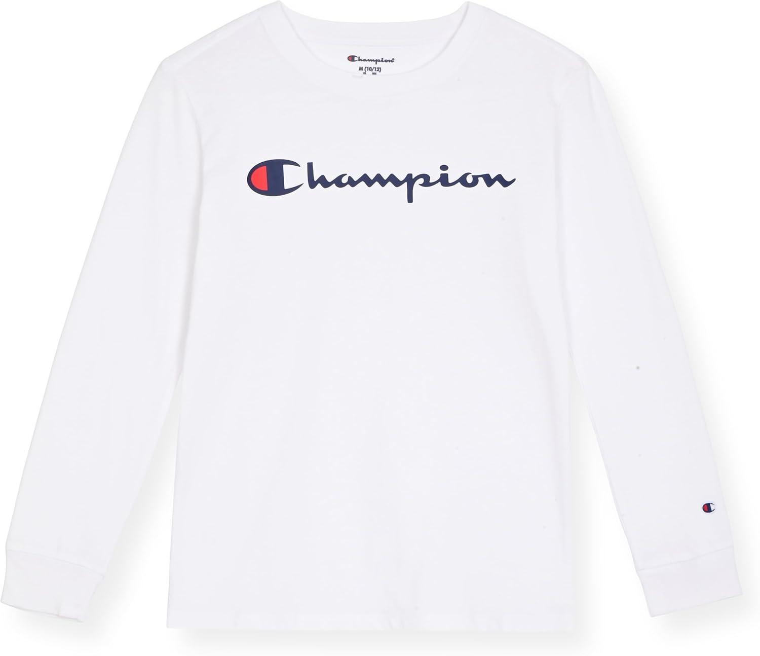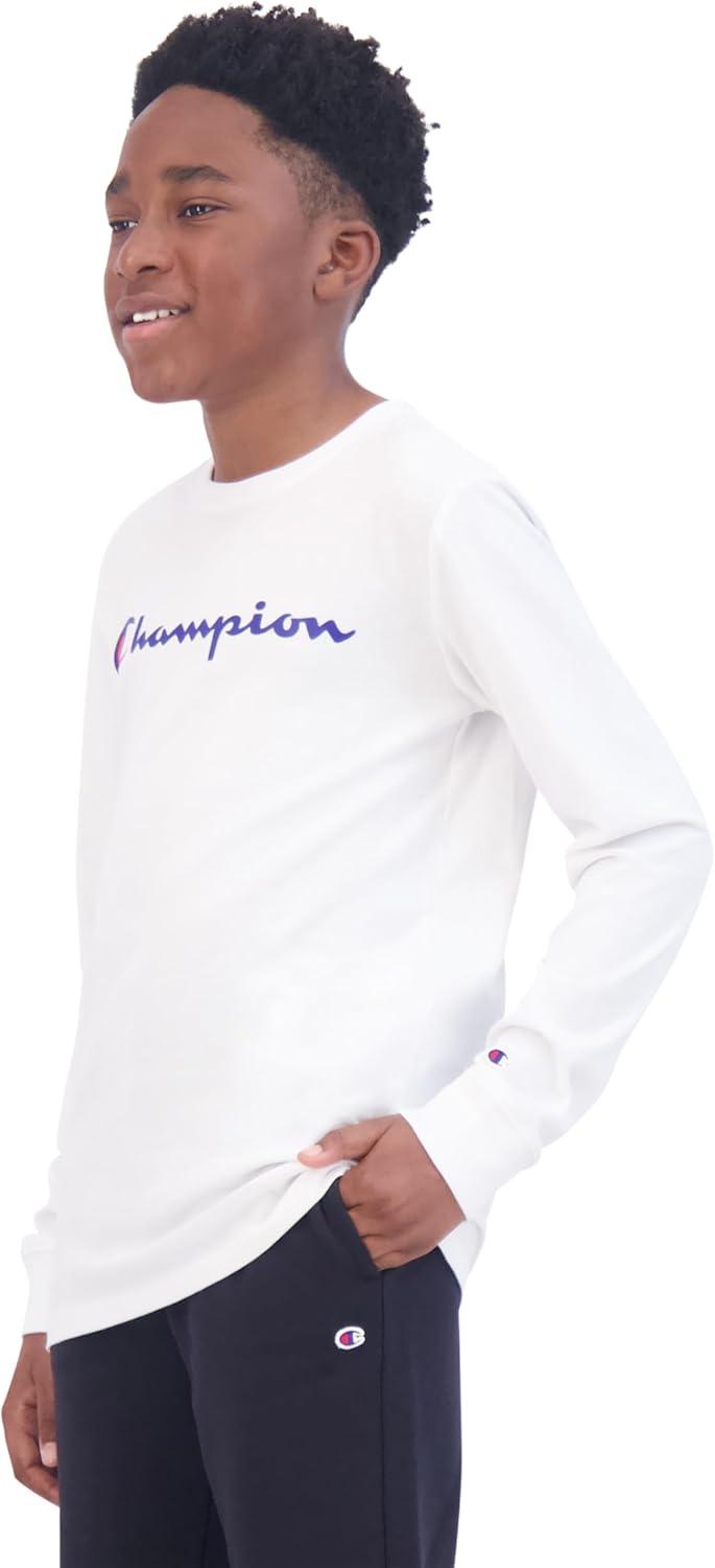 Champion Boys’ Long Sleeve Tee Shirt for Kids Athletic Tops(Signature Bright White)