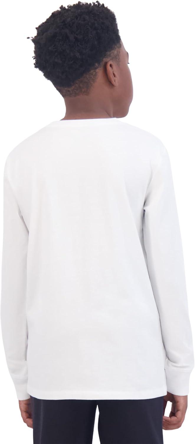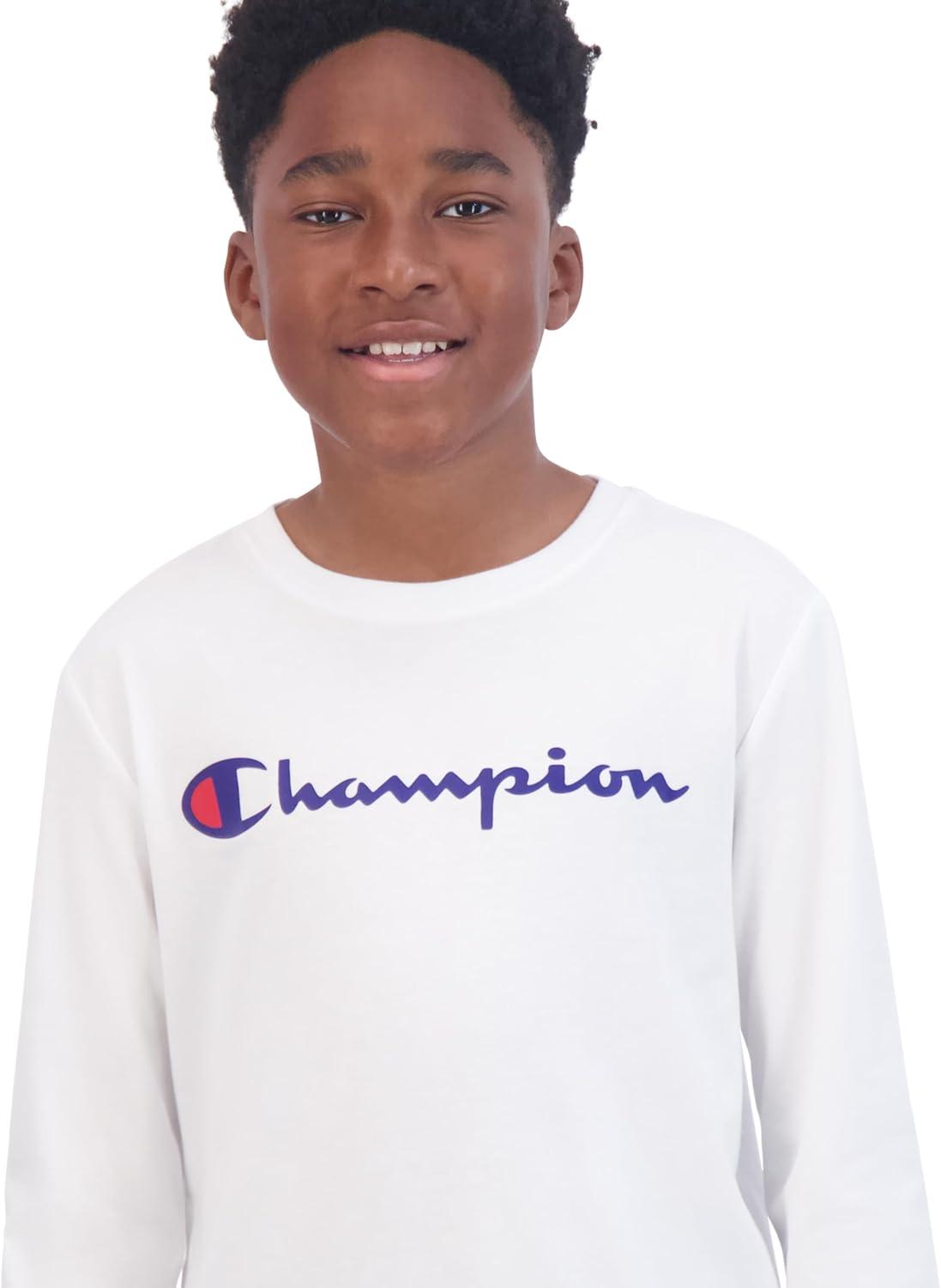 Champion Boys' Long Sleeve Tee Shirt for Kids Athletic Tops(Signature Bright White)