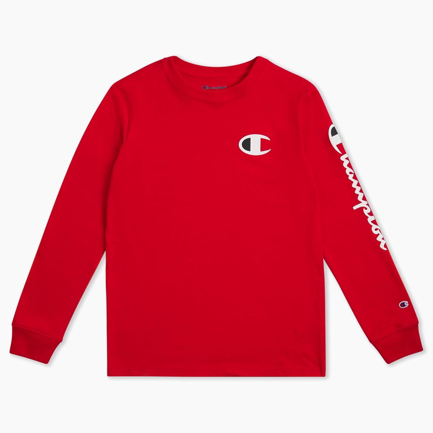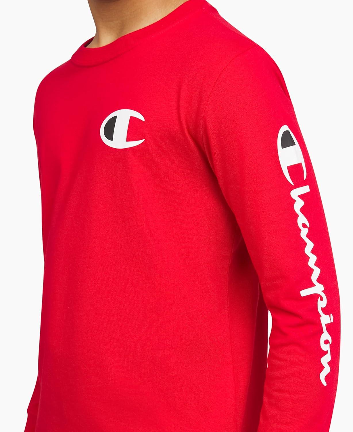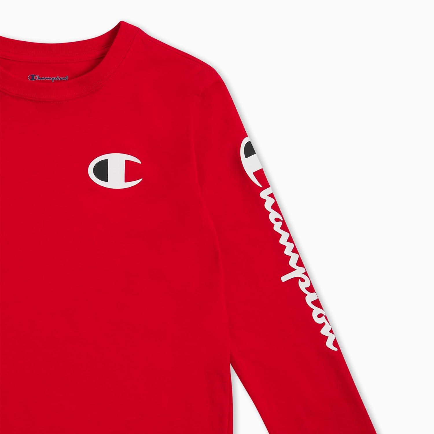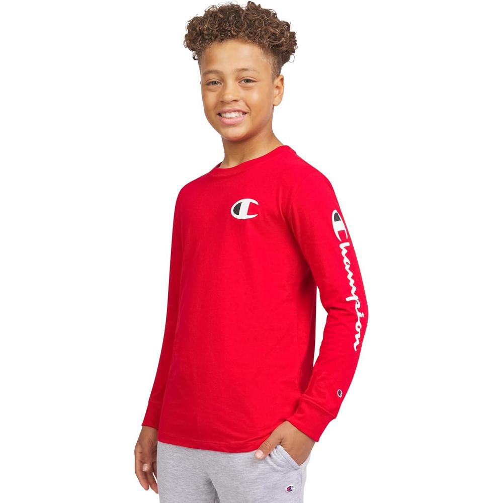 Champion Boys' Long Sleeve Tee Shirt for Kids Athletic Tops(Signature Red)