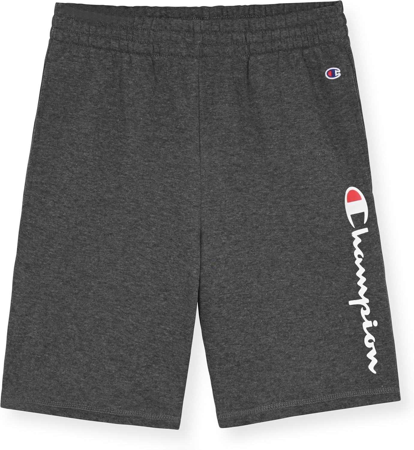 Champion Boys Shorts 2 Pack Athletic Fleece Short for Boys(Grey Heather-black)
