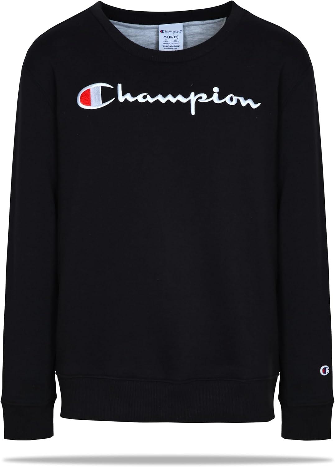 Champion Boys Sweatshirt for Kids Pullover Fleece Crewneck Sweater(Signature Dark Black)