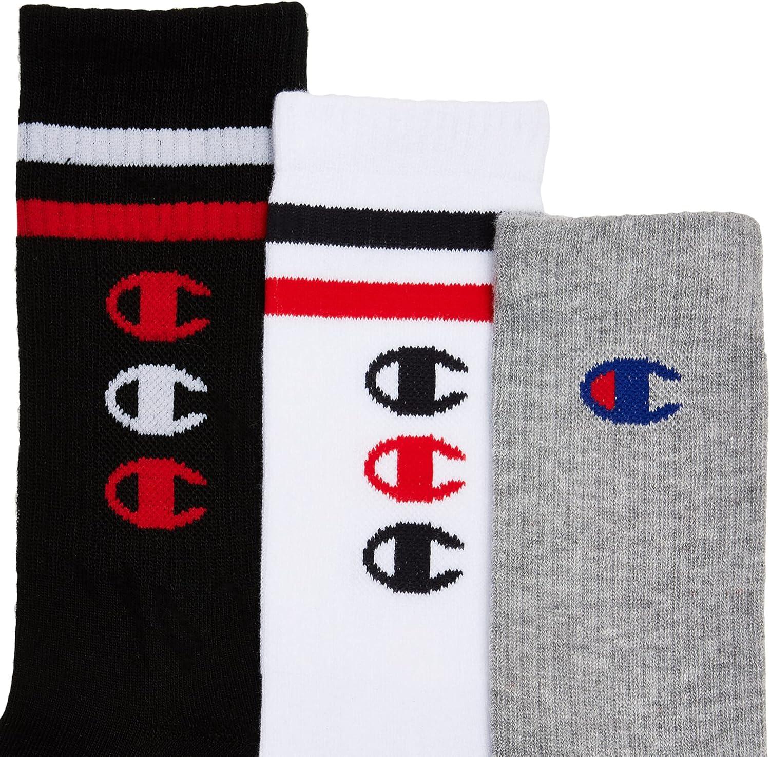 Champion mens 3-pack 3 “Ccc Logo Crew SocksCrew Sock(Grey/White/Black)