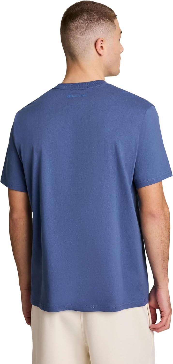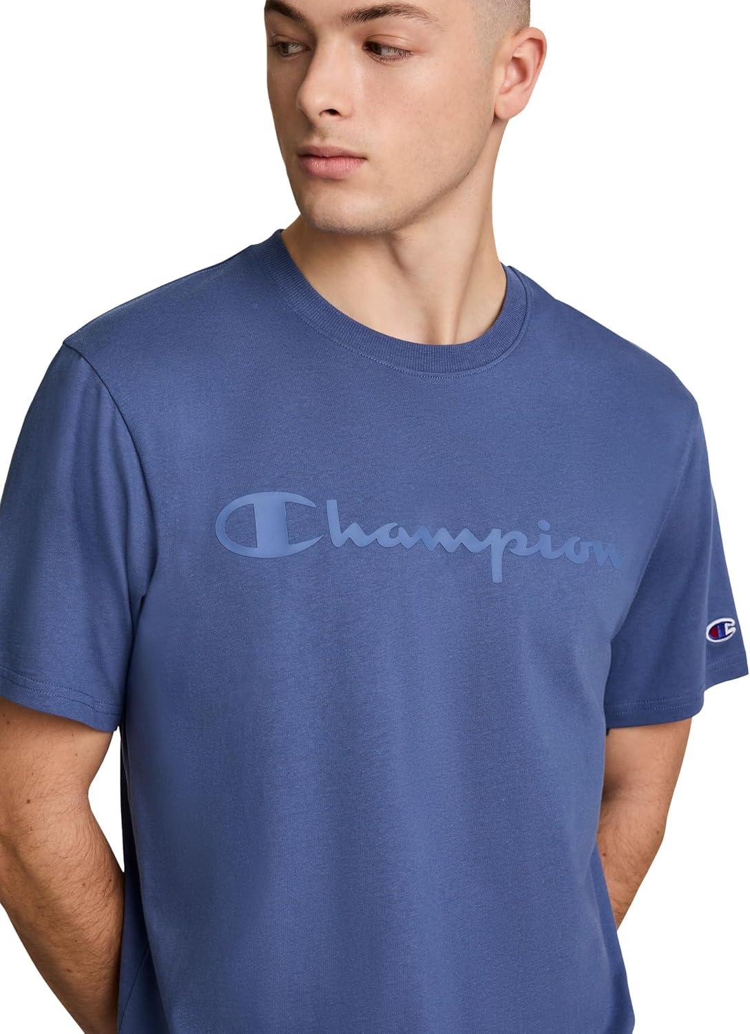 Champion Men's Classic Script Graphic Short Sleeve T-Shirt, Standard Fit, Script Logo, Available in Regular and Big & Tall(Coastal Fjord)