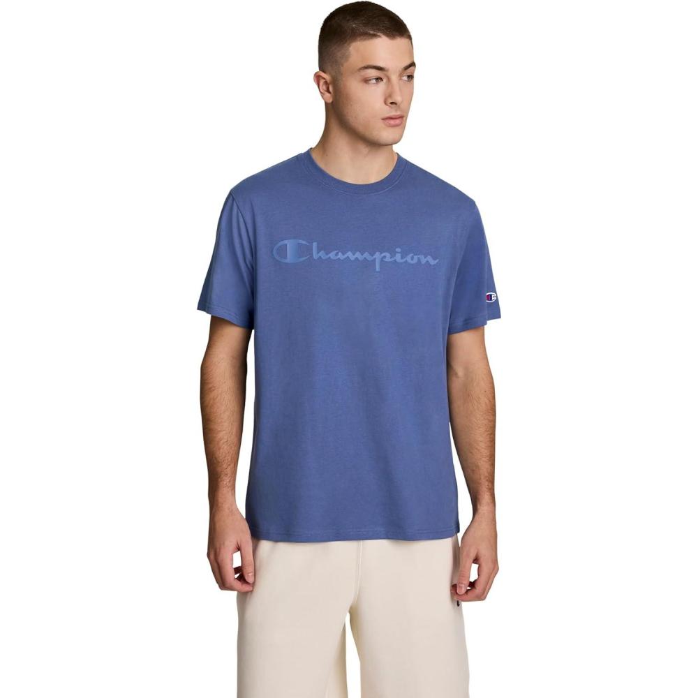image:imageChampion Mens Classic Script Graphic Short Sleeve TShirt Standard Fit Script Logo Available in Regular and Big amp TallCoastal Fjord