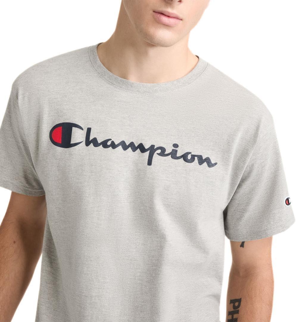 Champion Men’s Classic Script Graphic Short Sleeve T-Shirt, Standard Fit, Script Logo, Available in Regular and Big & Tall(Platinum Silver Heather)