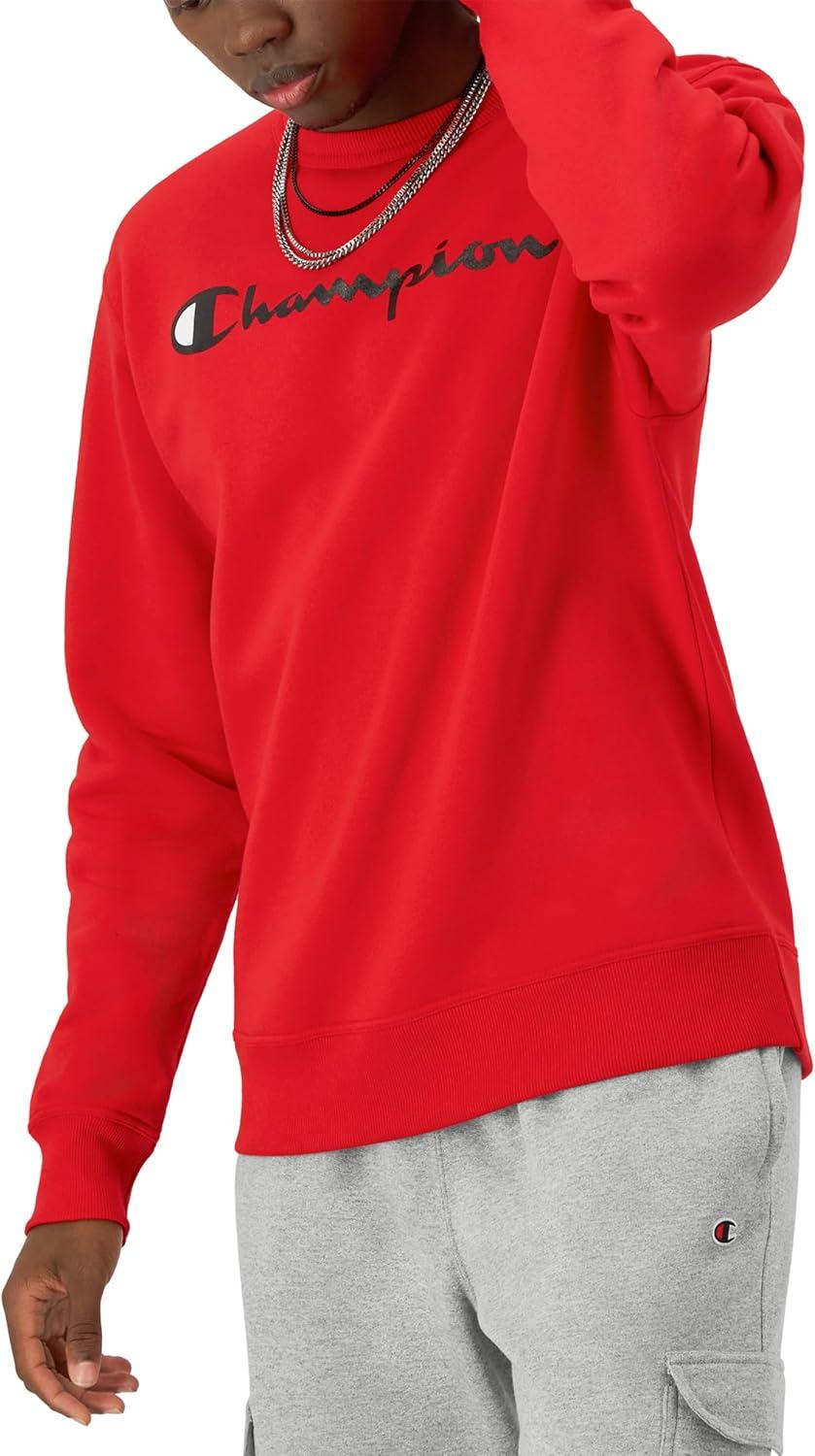 Champion mens Crewneck Sweatshirt, Powerblend Fleece, Hoodie Sweatshirt for Men, Script Logo (Reg. Or Big & Tall)(Team Red Scarlet Script)