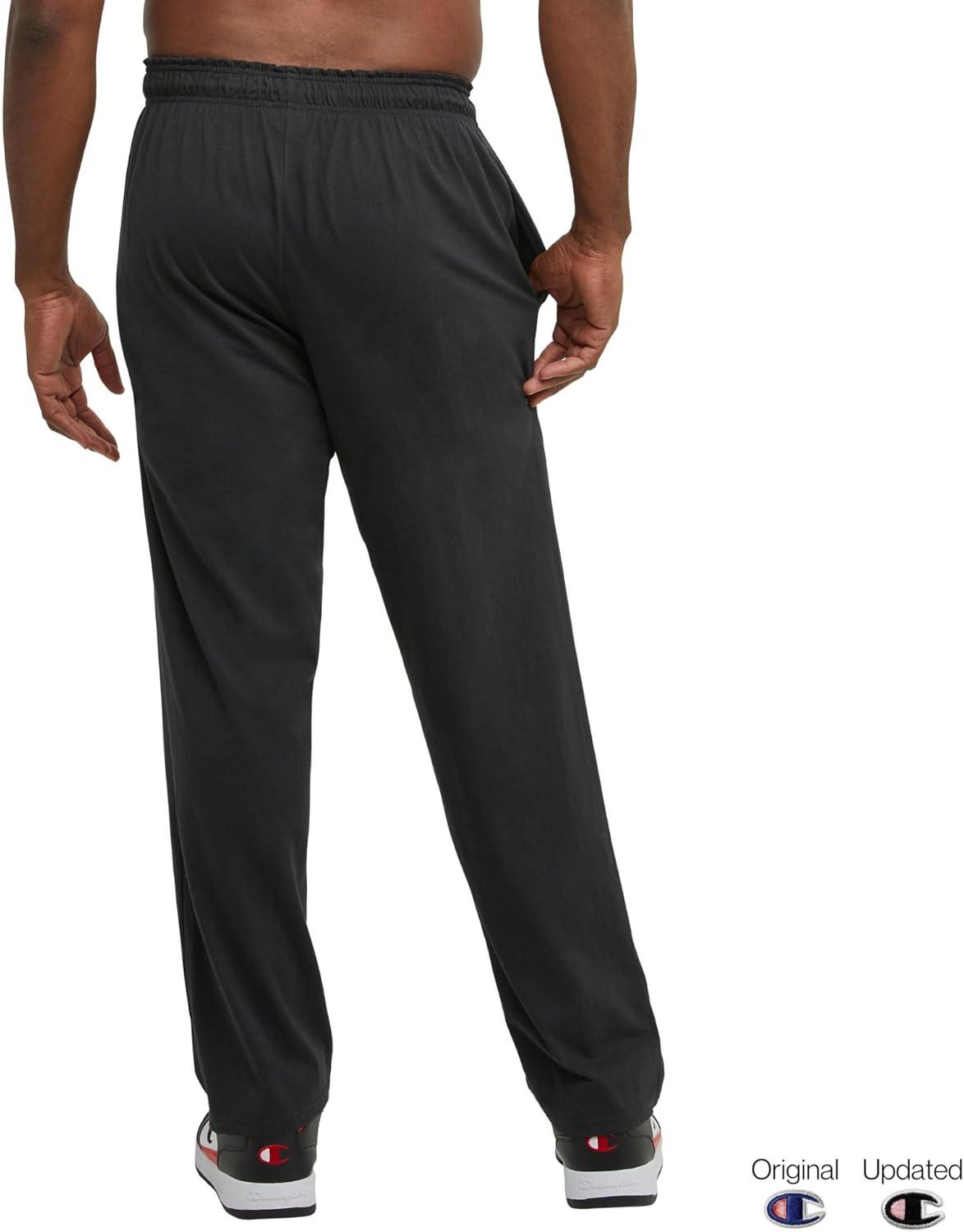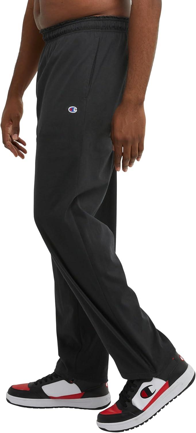 CLASSIC CHAMPION STYLE. These men’s open-hem lounge pants deliver ultimate lightweight comfort and are as soft as your favorite jersey knit t-shirt. Made for everyday at-home wear, their minimalist design features a stretch waistband with drawcord closure for a customizable fit. Convenient side pockets are the perfect place to store your phone, wallet, and more, while the open hem completes the laid-back look. These men’s lounge pants are finished with a Champion C logo patch at the left hip and are ready to be paired with your favorite tee or hoodie for an effortlessly cool 'fit.
