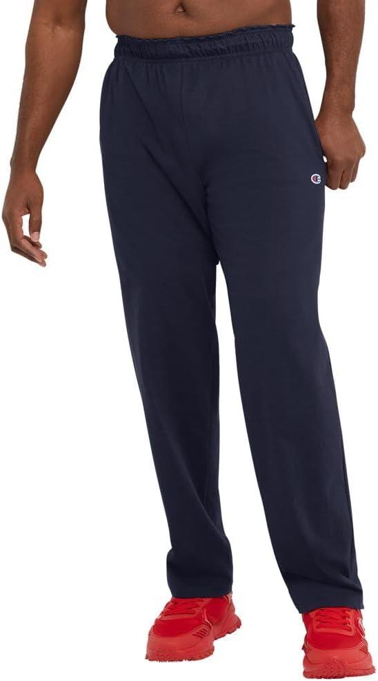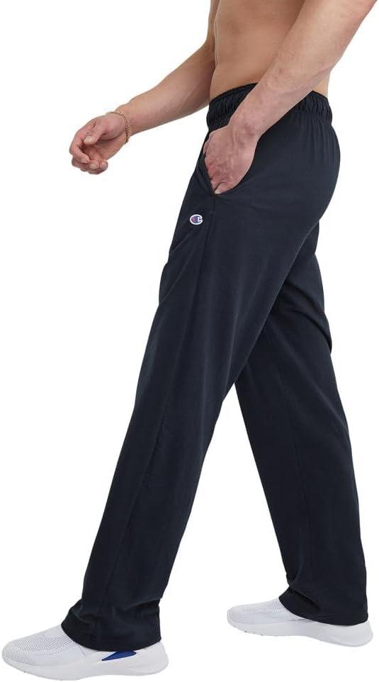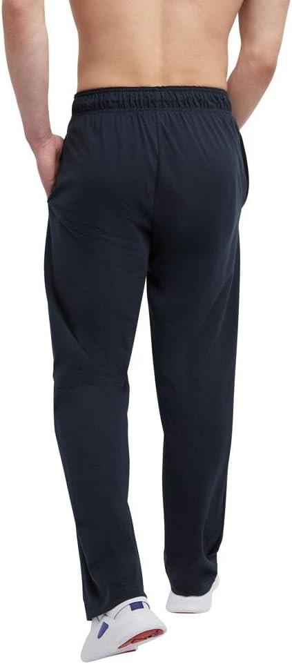 CLASSIC CHAMPION STYLE. These men’s open-hem lounge pants deliver ultimate lightweight comfort and are as soft as your favorite jersey knit t-shirt. Made for everyday at-home wear, their minimalist design features a stretch waistband with drawcord closure for a customizable fit. Convenient side pockets are the perfect place to store your phone, wallet, and more, while the open hem completes the laid-back look. These men’s lounge pants are finished with a Champion C logo patch at the left hip and are ready to be paired with your favorite tee or hoodie for an effortlessly cool 'fit.