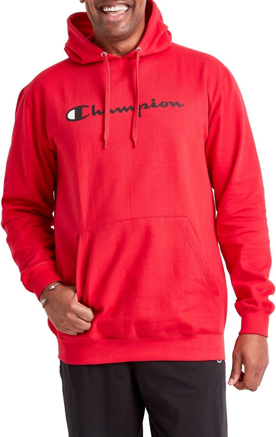 Champion Men’s Pullover Fleece Hoodie, Standard Fit, Midweight, Script Logo, Available in Regular and Big & Tall(Team Red Scarlet – Classic Script Logo)