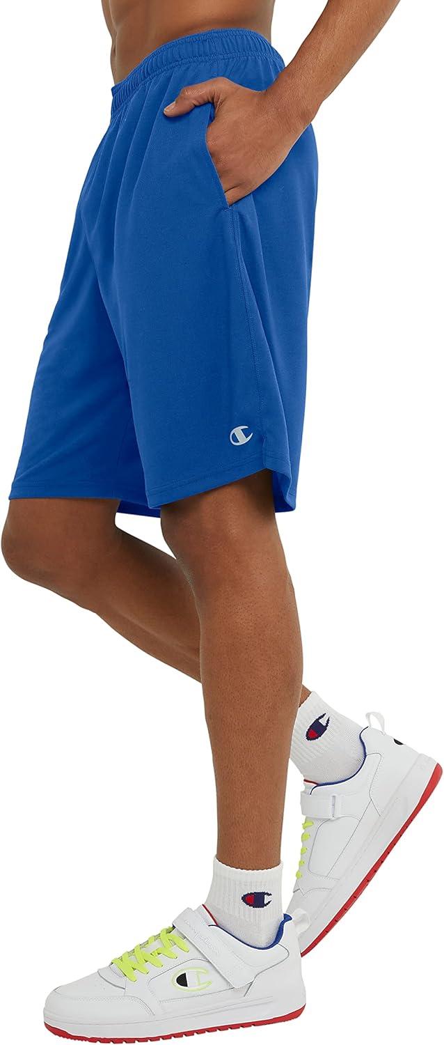 THE LENGTH YOU WANT. For a pickup game, a workout at the gym, or a morning run, these sport shorts for men are a perfect fit. They're made with DOUBLE DRY™ technology that wicks sweat away from skin and dries in a flash to keep you cool and comfortable. Designed for maximum mobility, these men's shorts have an elasticized waistband with an inner drawcord that you can adjust to your best fit. Plus, side vents make for easy moves on and off the court. These performance training shorts are thoughtfully designed with convenient side-seam pockets to hold your phone, keys, and other essentials. You'll appreciate the knee-length 10″ inseam as well as the above-the-knee 7″ inseam offering, adding coverage and comfort. The finishing touch on this effortless design is the iconic Champion C Logo at the left leg.