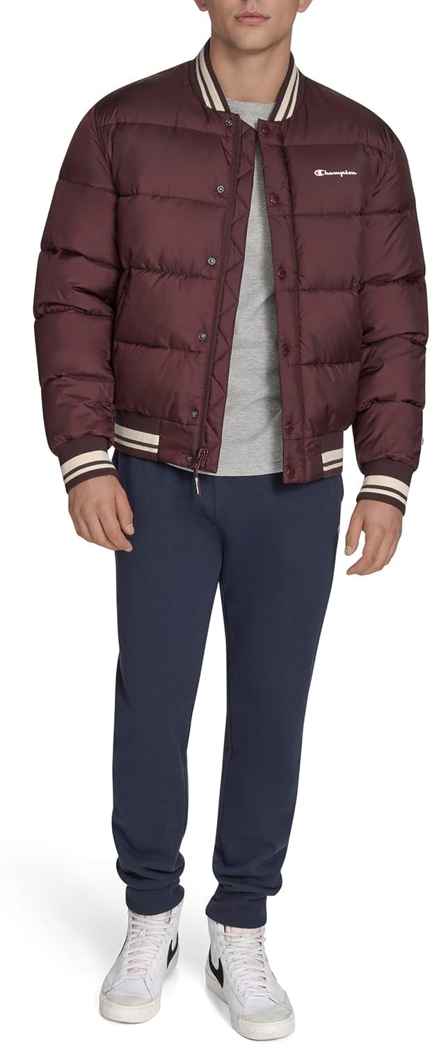 Champion mens Varsity Bomber Puffer Jacket(Wine Tech)