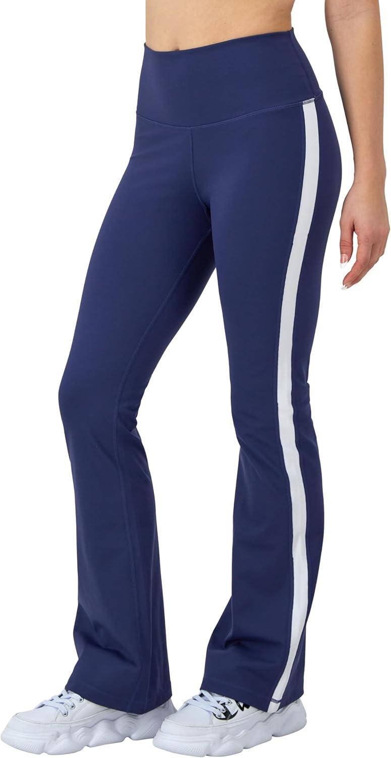 Champion Women’s Flare Leggings, Soft Touch, Moisture Wicking, Flared Pants for Women, 31.5″ (Plus Size Available)(Blown Glass Blue/White)