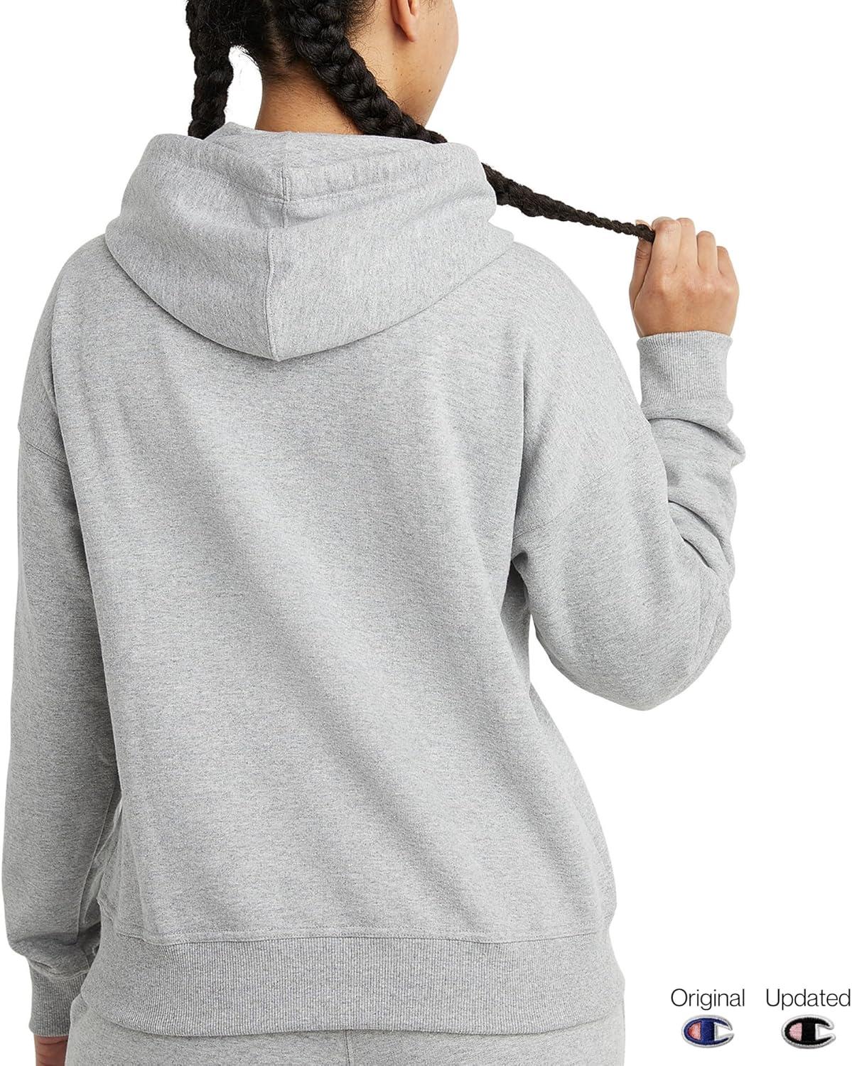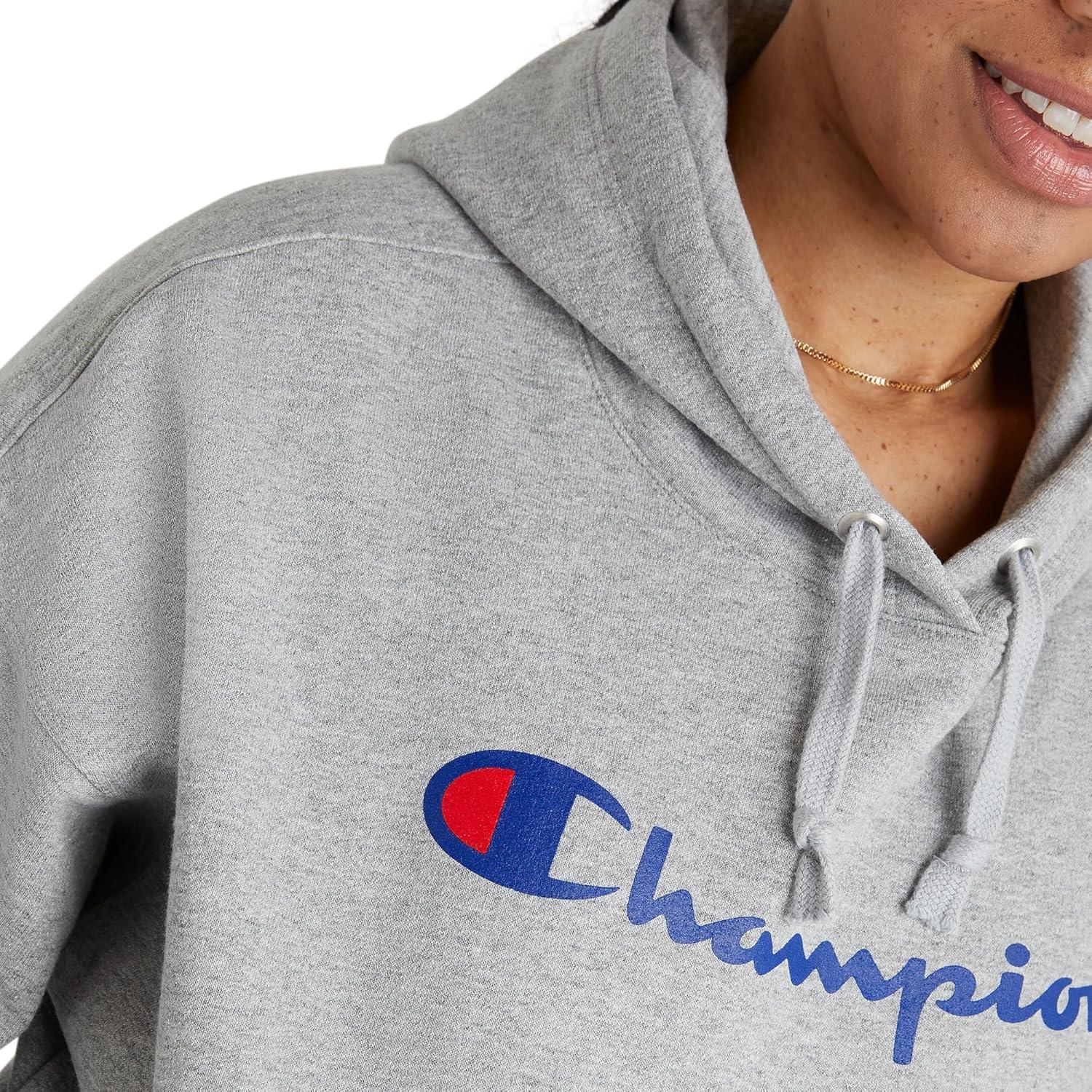 Champion Women’s Pullover Fleece Hoodie, Loose Fit, Midweight, Script Logo(Oxford Gray - Classic Script Logo)