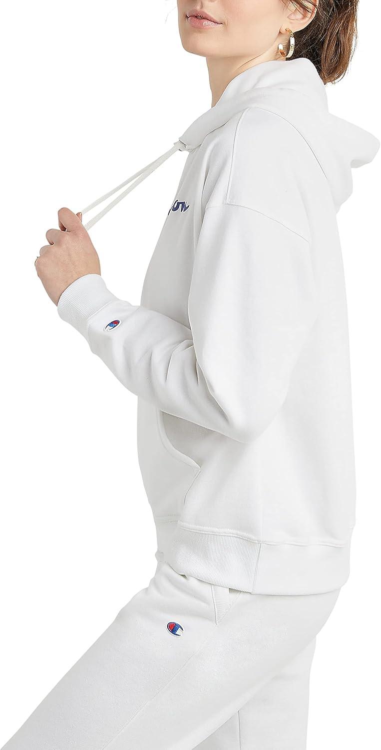 Champion Women’s Pullover Fleece Hoodie, Loose Fit, Midweight, Script Logo(White – Classic Script Logo)