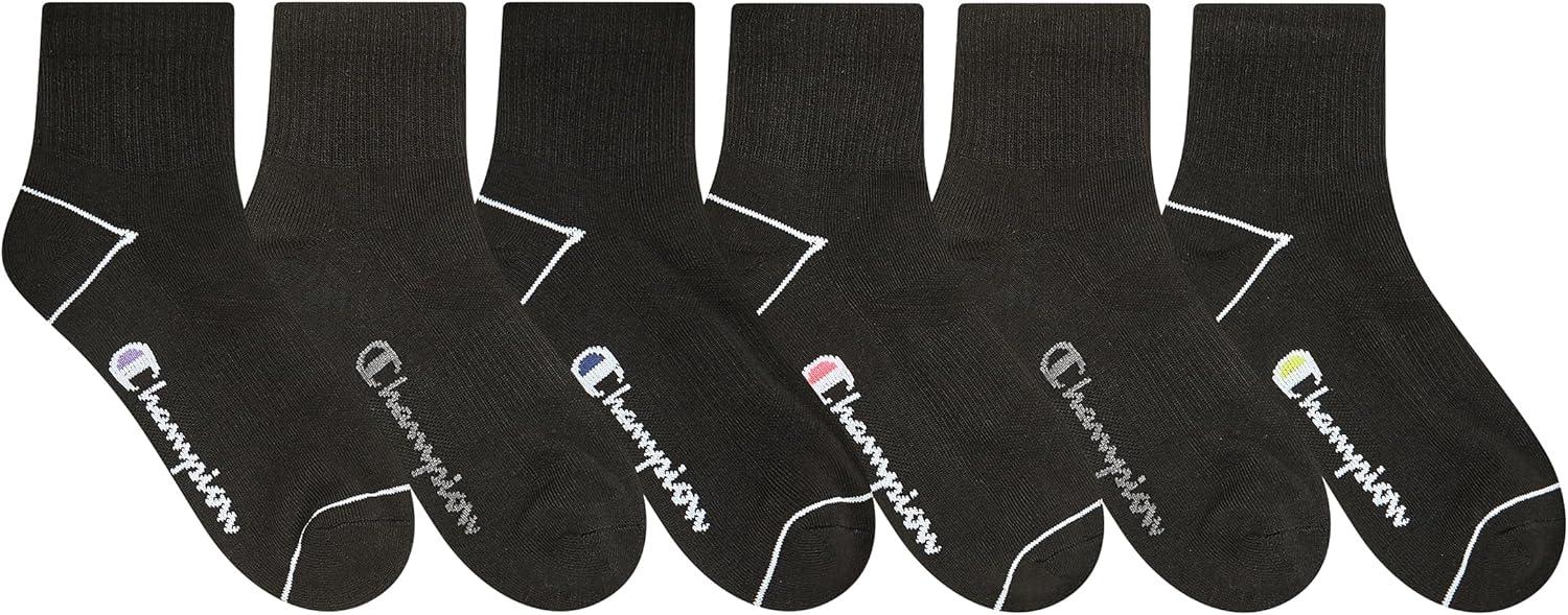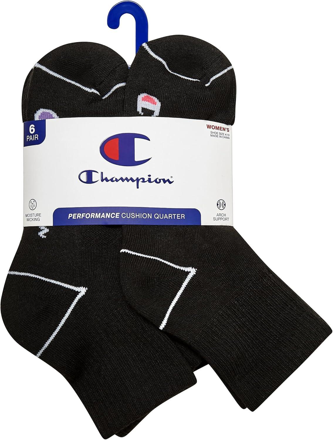 Champion Women's Quarter Socks – 6-Pack Cushioned Athletic Socks with Moisture-Wicking, Arch Support (Size 5-9)(Midnight Black)