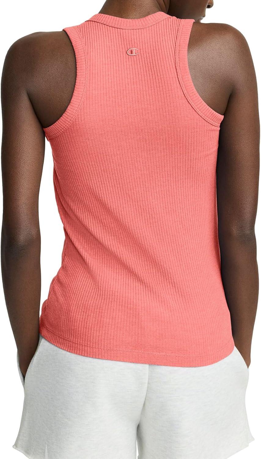 Champion Women's Ribbed Tank Top, High Neck, C Logo(Ripe Papaya Red)