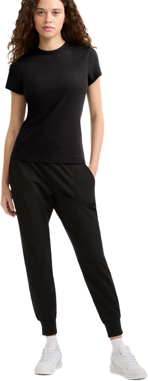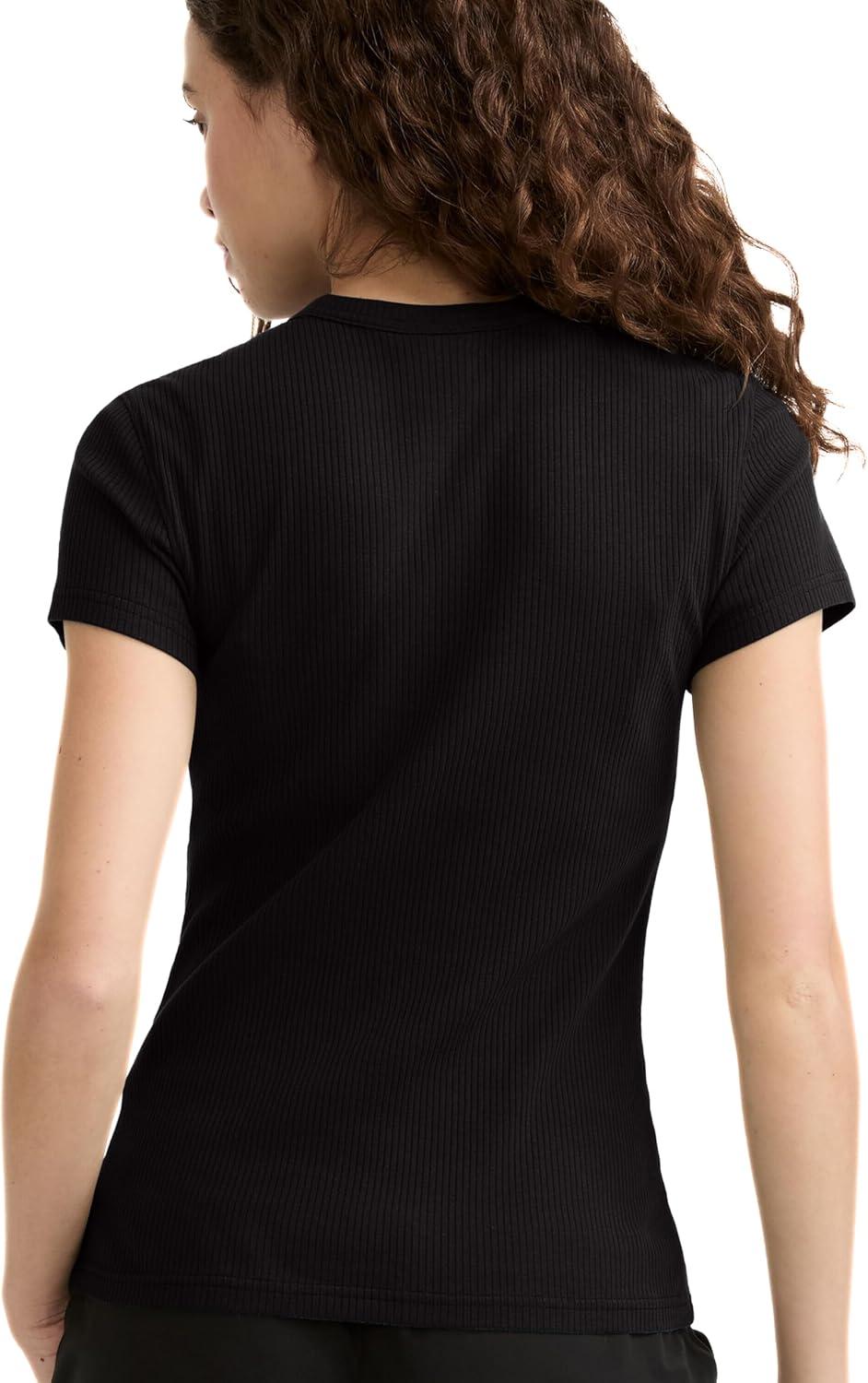 Champion Women's Slim Ribbed Tee, Iconic C Patch(Black)