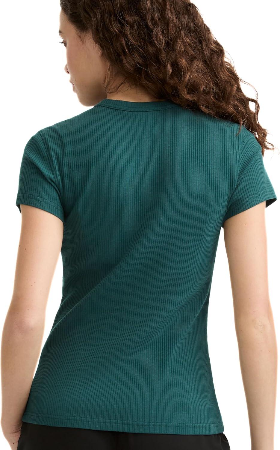 THE CHIC TEE – This classic ribbed tee with a crew neckline boasts a sporty look that trends from day to night. Made with a cotton blend, this T-Shirt is slim fitted to the body with ribbed detailing throughout, adding texture that looks and feels great. The iconic C Patch hits at the left sleeve on this feminine ribbed T-Shirt, offering a cute, streetwear-inspired look that fares from town to tailgate. Pair it with your best joggers or Champion shorts for a signature look head to toe.